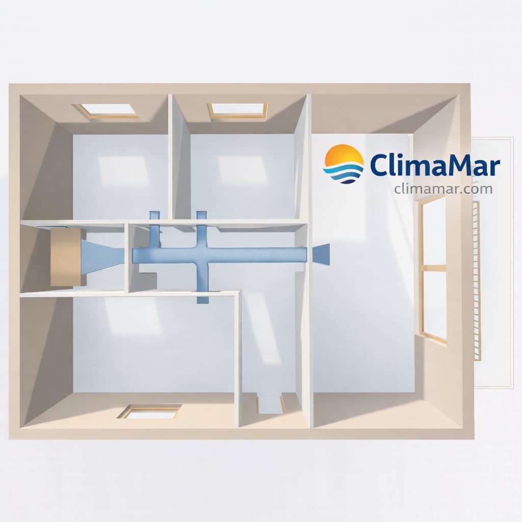 Gestionar el clima en una vivienda de 200 m2 exige una planificación técnica de alto nivel. En ClimaMar, diseñamos cada red de conductos para garantizar que la presión y el caudal de aire sean idénticos en todas las estancias, desde el salón principal hasta el último dormitorio. Mediante un estudio detallado bajo normativa RITE, optimizamos el rendimiento de su equipo para obtener el máximo confort con el menor consumo energético posible en grandes superficies.