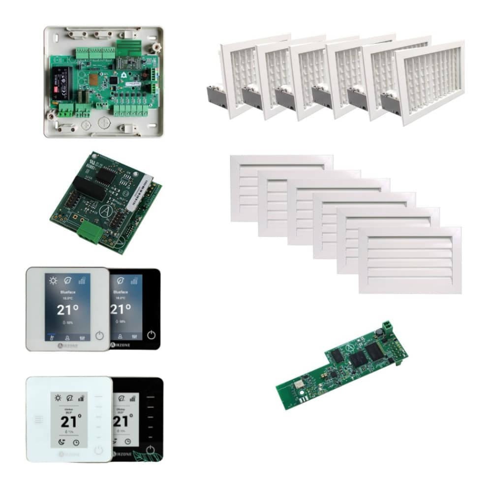 El kit incluye las 6 rejillas motorizadas de impulsión. Para un funcionamiento óptimo, te recomendamos añadir rejillas de retorno adecuadas, consúltanos opciones.